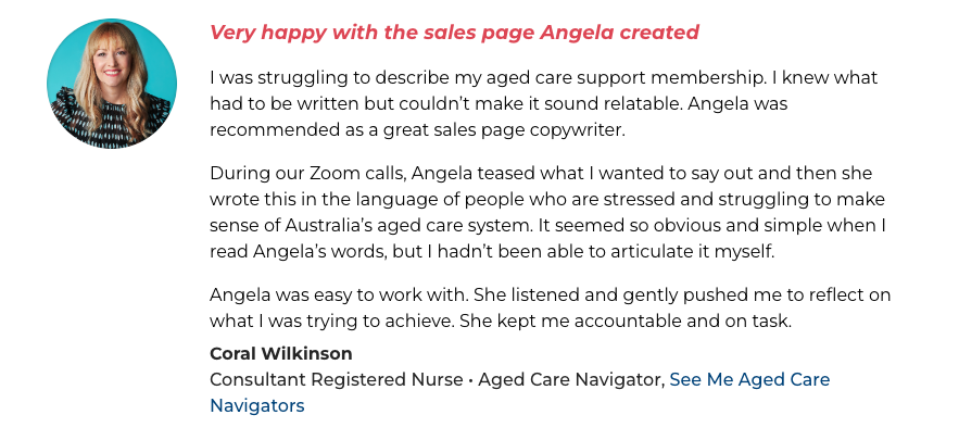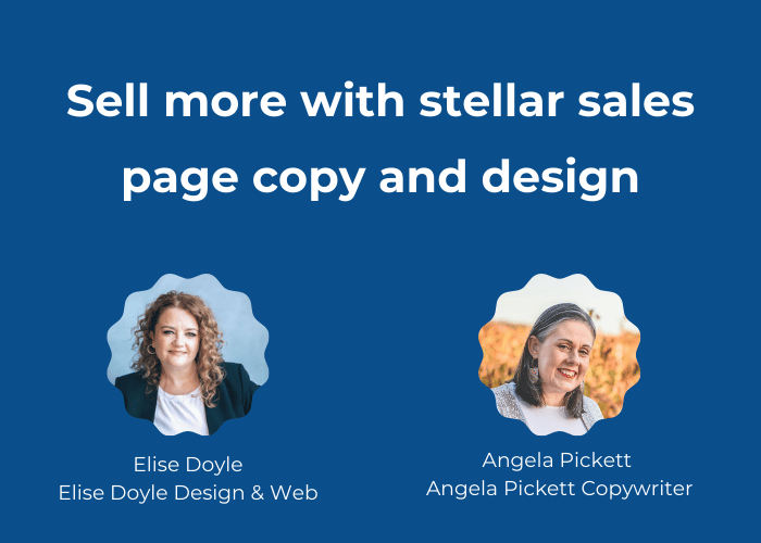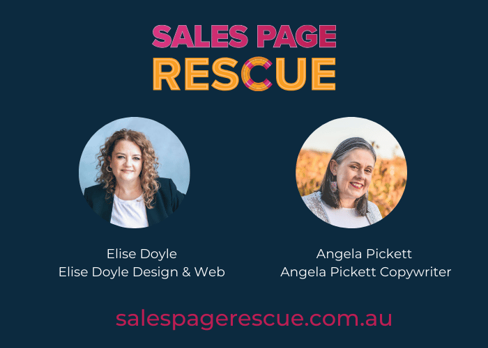 I’m Angela Pickett, a sales page copywriter based in the Barossa Valley, and I wrote this blog with my sales page partner-in-crime, web designer and developer Elise Doyle. Together, we run Sales Page Rescue workshops to help business owners like you write and design sales pages that actually sell (without feeling gross and salesy).